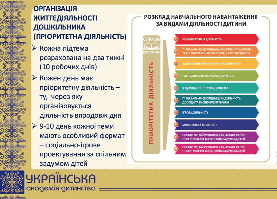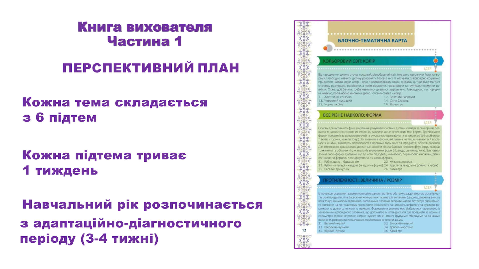 Проектом передбачено 18 тем на навчальний рік. Теми об’єднані у 5 блоків.