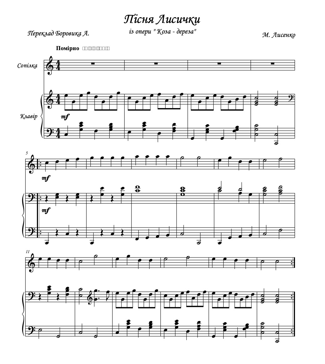- Ноти "пісні "Я лисичка, я сестричка" муз. М. Лисенка