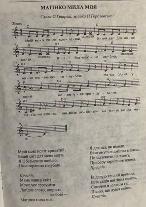 3. «Матінка мила моя» муз. Н. Гороховської, сл. С. Грицька