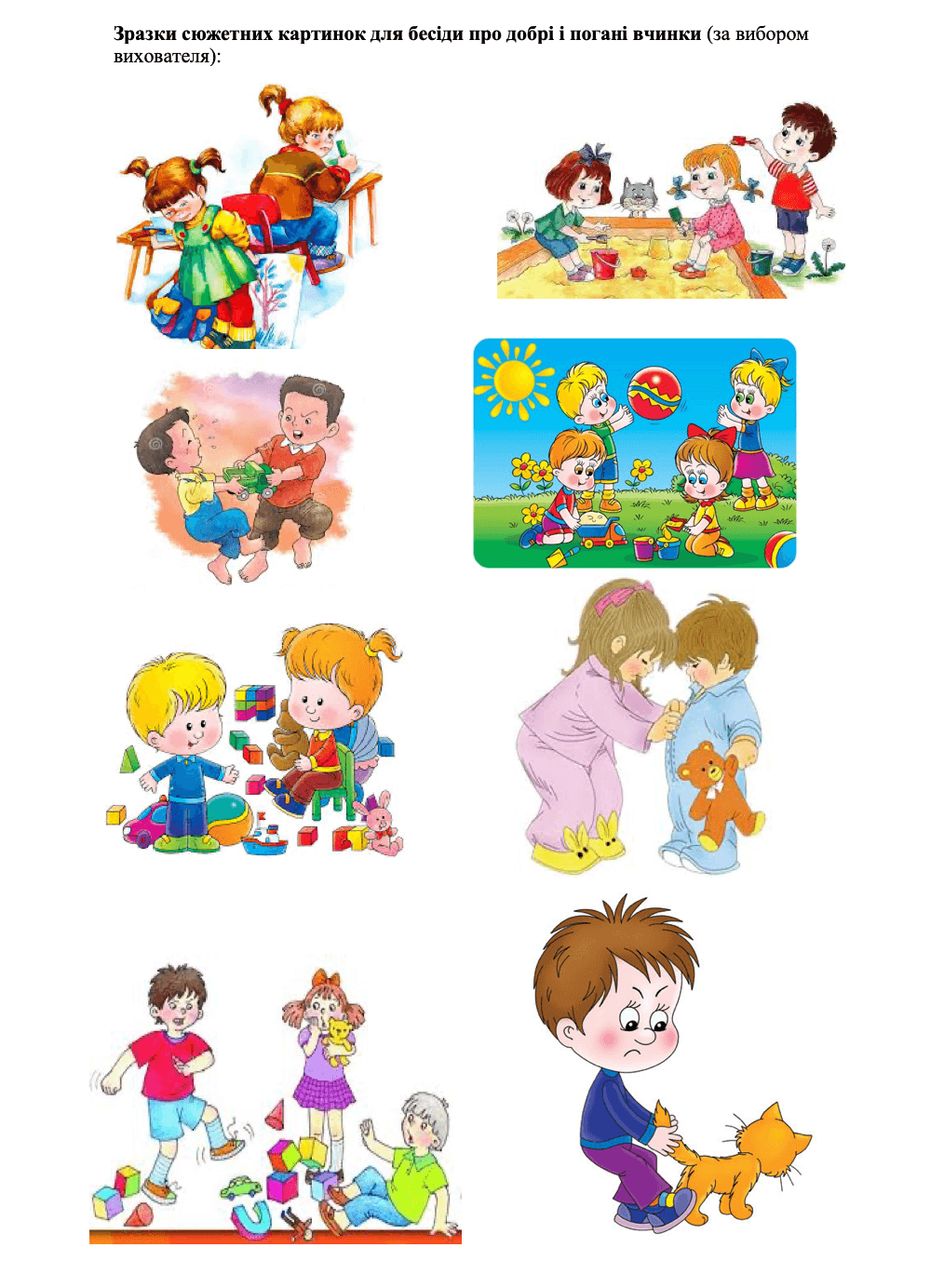 Зразки сюжетних картинок для бесіди про добрі і погані вчинки (за вибором вихователя):