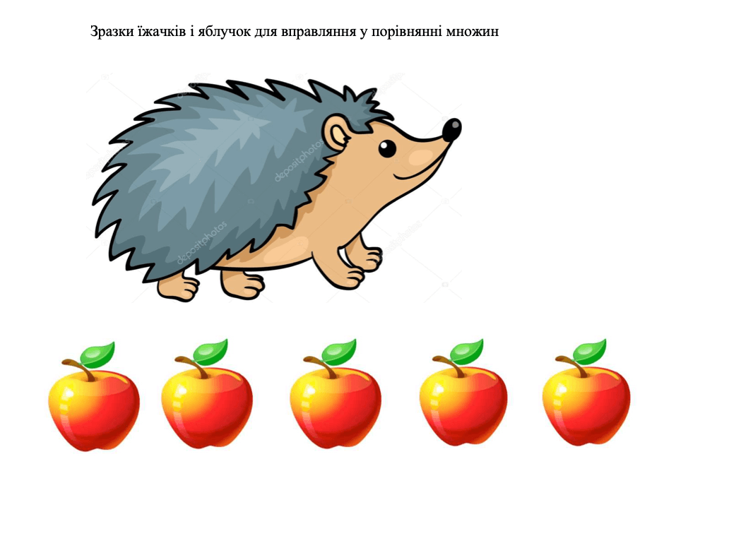 Зразки їжачків і яблучок для вправляння у порівнянні множин